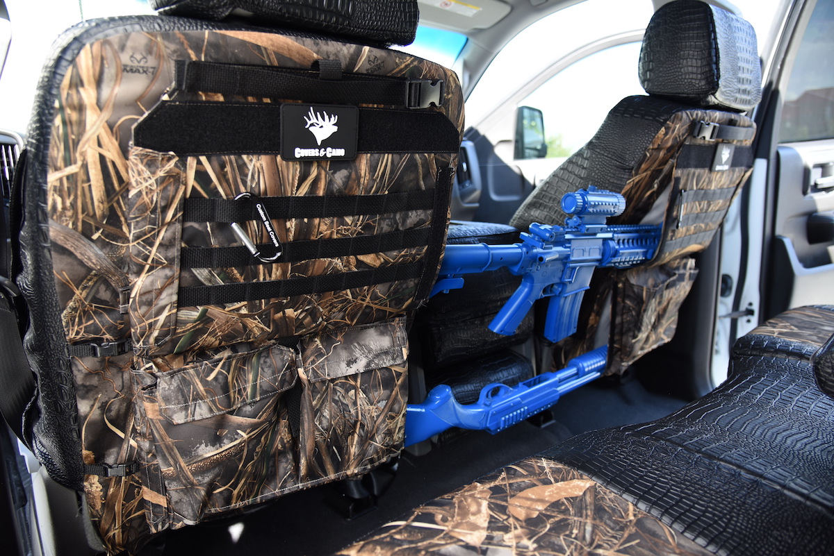 These Realtree® Max-7 camo seat covers also can be built with storage pockets for guns and gear. Pocket options include the Special OPS Package (rifle slings and gear storage), pistol pockets, MOLLE pockets and pistol holster. As you fill out the order form for your Realtree® Max-7 camo custom seat covers you will be provided with the option to add on your choice of pockets. Side-x-side seat covers can also be made from the Realtree® Max-7 pattern. The side-x-side Realtree® Max-7 seat covers will not have the foam backing as the truck seat covers. Since they get more water exposure the foam is removed to prevent mildew. Learn more and order your Realtree® Max-7 seat covers from CoversAndCamo.com.
