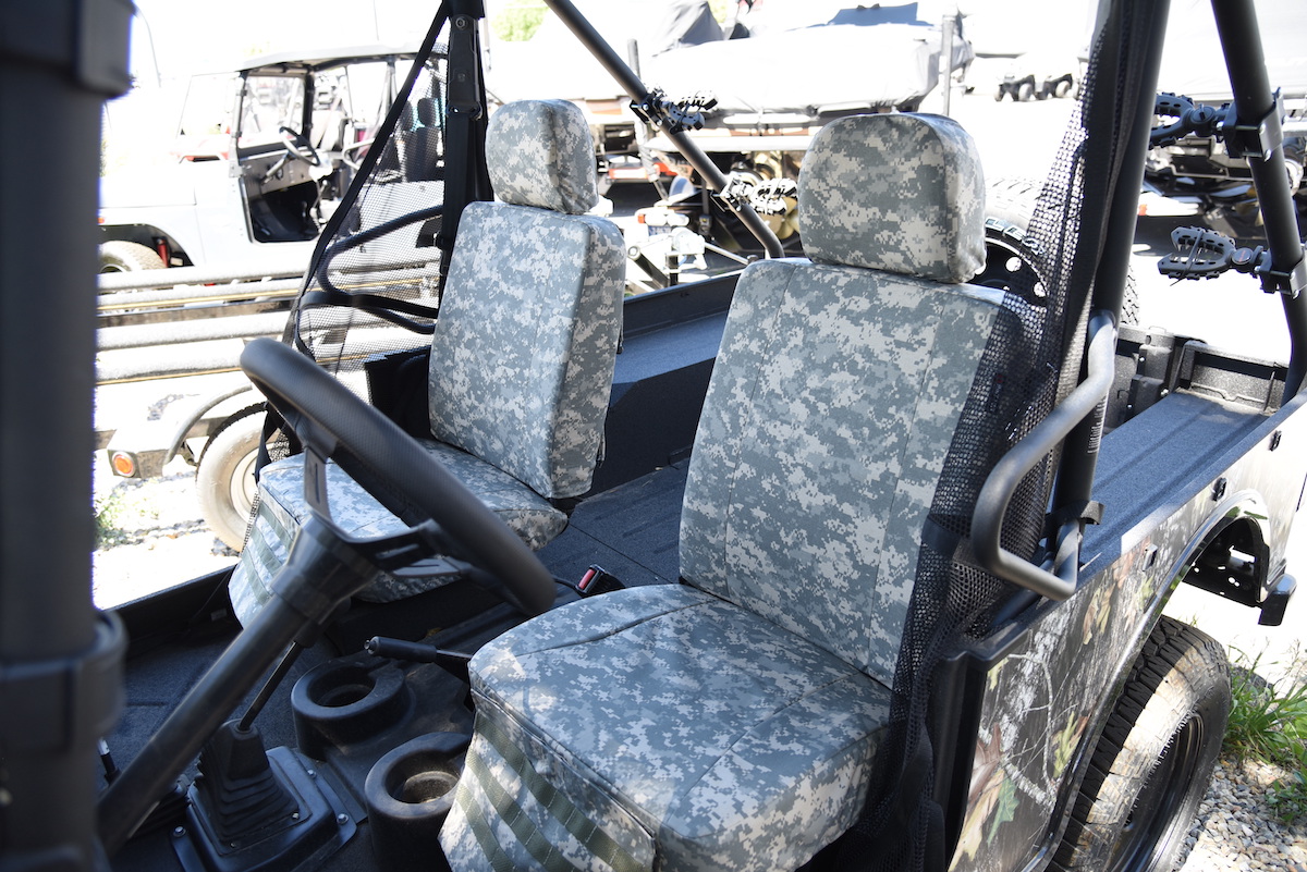 At Covers & Camo, you have options that are completely customizable with the seat covers we design for your Mahindra Roxor. Pockets can be added for extra functionality along with a headrest logos for customization. The fabric materials we use are tailored for any taste, so no matter if you use your Mahindra Roxor for work or for outdoor recreation, we have a design for you. You can have the perfect combination of functionality, durability and style with these Mahindra Roxor custom seat covers.