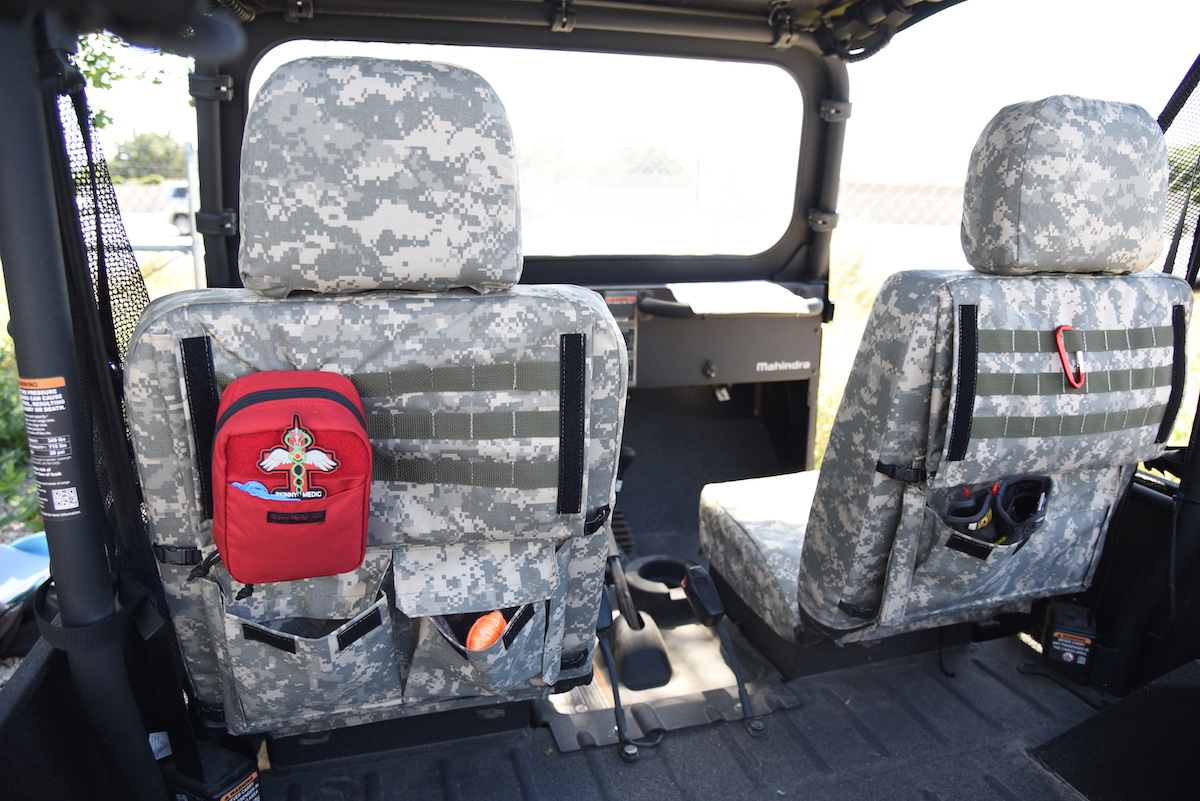 These amazing Mahindra Seat Covers have the customizable option to add storage pockets for your pistol, ammo, or your sunglasses and flashlights. The Removable Pistol Pocket, which can be added to either passenger or driver’s side, is a perfect, convenient pouch for keeping your essentials in reach. The MOLLE Pocket is not removable but it has MOLLE webbing on the outside that can be a great place to store extra flashlights, carabiners, hearing protection, and more items in a very handy location. You can even upgrade to the incredible Special Ops Package, which is not available in any other UTVs. The Special Ops Package has two rifle slings that can be used as large storage pouches, MOLLE webbing, as well as two lower pouches for storing small items like gloves or ammo. If you have any questions about your vehicle’s seats or seat cover installation, check out the Covers and Camo Installation Videos to walk through the process from beginning to end.